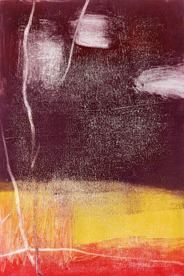 Born in Minnesota, Barbara moved from Boston to Sebastopol, CA in Fall of 2015. Her father, William Saltzman, was an artist well-known nationally for his paintings, sculpture, and large stained-glass. Barbara studied at the Accademia di Belle Arti in Florence Italy; UC Berkeley, with Adja Yunkers and David Hockney; and the University of Minnesota, where she received her Bachelor of Arts in studio art with a concentration in painting and printmaking. Her favorite activities when not doing artwork: playing fiddle, old-time and bluegrass. Time with local family. Barbara’s artwork is primarily mixed media and monotype prints. Inspiration, process, and themes Myriad explorations, even including line drawings of both semi-representational and highly imaginative subjects. Regardless of material, layering elements is important to me for my own process and experience, and for inviting the viewer to share in that experience and create his or her own story around it. I've been able to also incorporate into current work my experience of over 25 years of creating commissioned wall finishes including glazing, murals and Venetian plaster. Themes of landscape and land-forms, architecture, history/culture, natural and human phenomena, and interpretations of being in and observing time and space in myriad dimensions are among the many subjects I find intriguing. The concept of "windows" is a recurring one that I continue to explore, considering it in a way as a lens through which color/texture and other elements are expressed. I enjoy working in series, so you will see in an exhibit, or among the online gallery images, some connection between either a few or many pieces done in a particular style or medium. Please visit Barbara's fine art website to see some artwork not shown here. If you find something there that you want to print here, let me know and I will add that work to this collection! https://www.barbarajacobsfineart.com To complement your art purchases: For information about color consulting work for interior and exterior of home and business locations: www.bjacobscolordesign.com